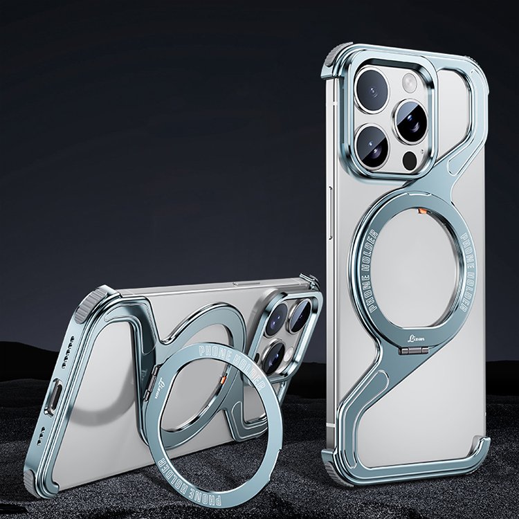 Bezel Less Metal Stand Phone Case for iPhone 13 14 15 16 Pro Max Aluminum Frameless Z Magnetic